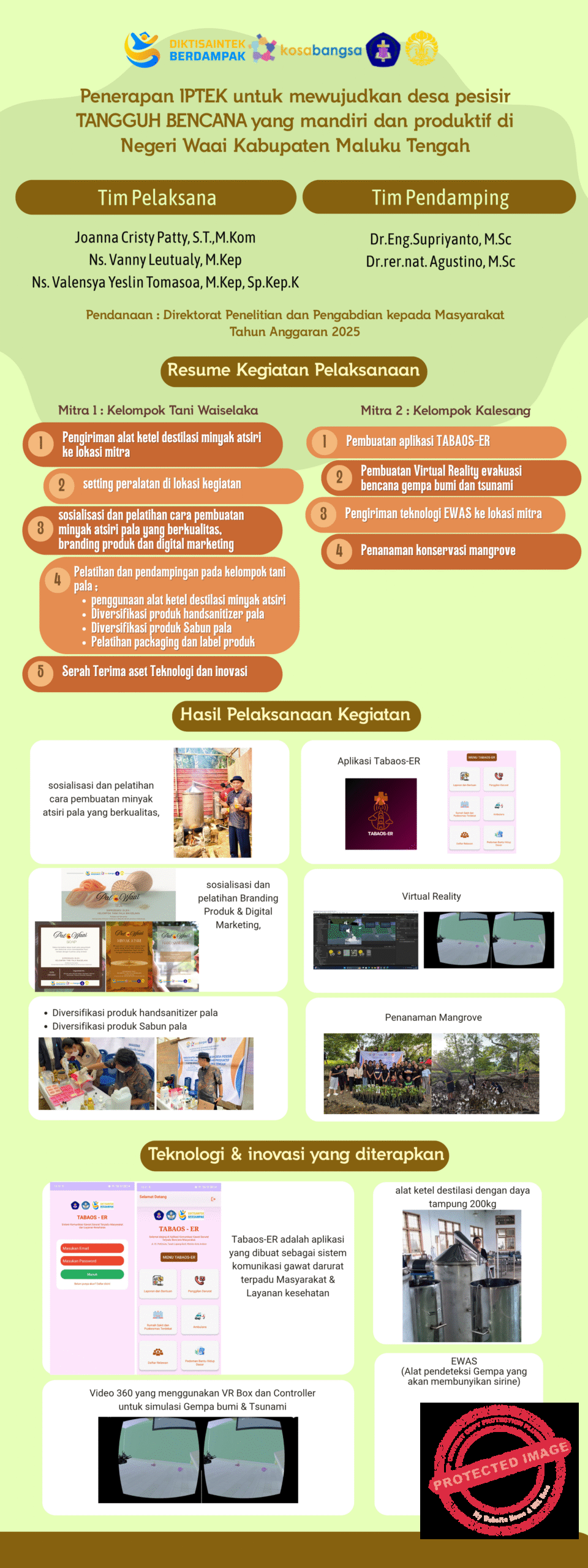 Penerapan IPTEK untuk mewujudkan desa pesisir TANGGUH BENCANA yang mandiri dan produktif di Negeri Waai Kabupaten Maluku Tengah : Kolaborasi UKIM dan UI Post published:November 14, 2025 Post category:Berita LJM Reading time:0 mins read You Might Also Like Audit Mutu Internal Akademik 2024/2025 November 13, 2025 Benchmarking Penjaminan Mutu UNHENA Tobelo dan UKIM Ambon Oktober 27, 2025 Seminar Natal Nasional 2025 Desember 15, 2025